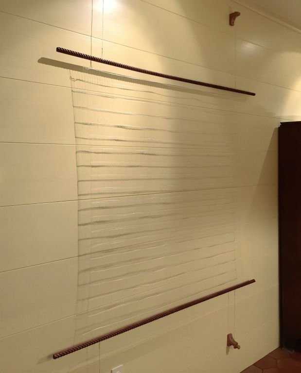 This piece was commissioned for the home of a private collector to make the thoughts and impressions of her guests into a work of art. In the same way that Tapestries recorded historical and mythical events in the grand homes of the past, this piece records the history of the house's guests. This piece was made with the feel of the country house in mind, integrating into the house and seamlessly becoming part of the interior landscape.